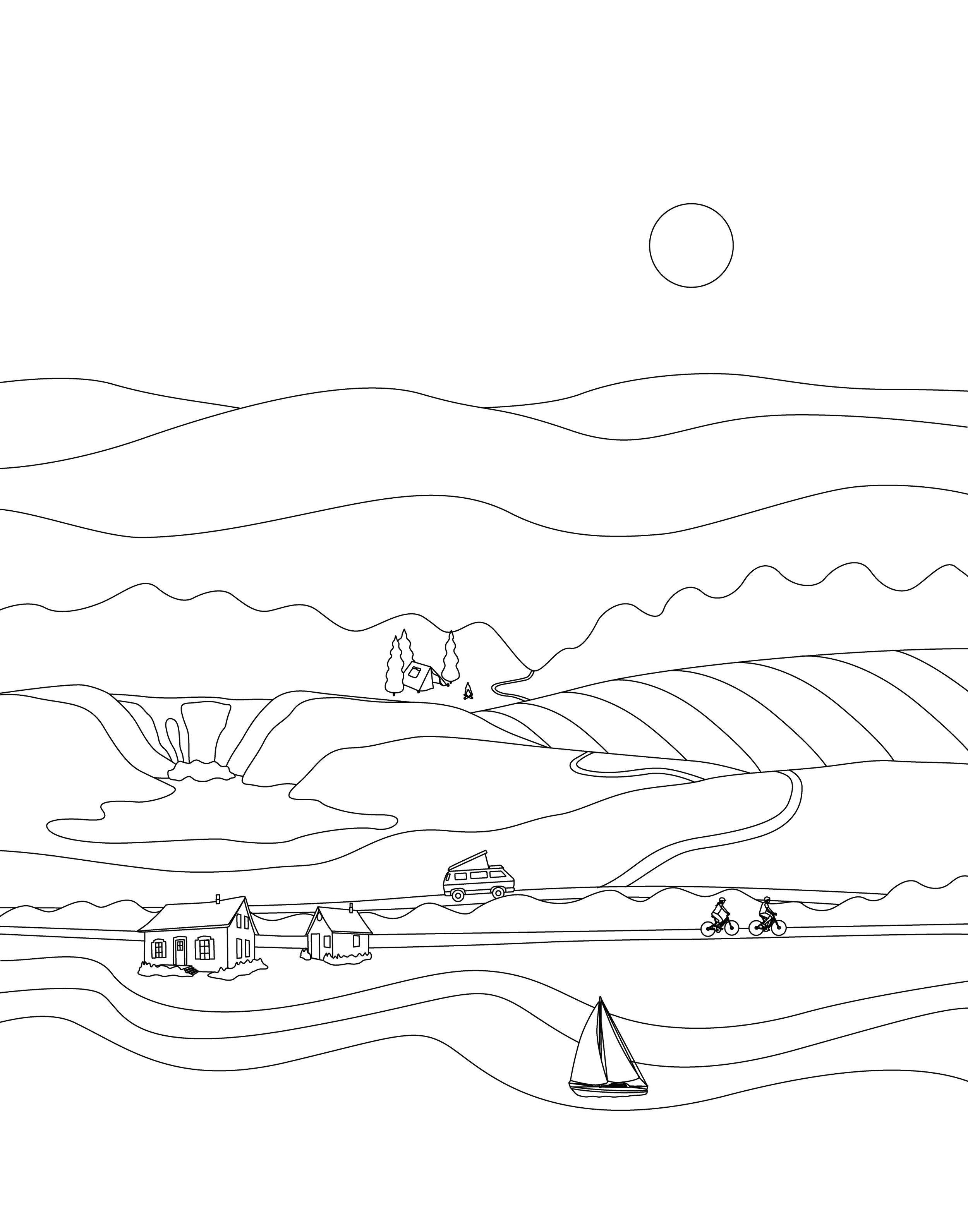 Création d’illustrations représentant la région de Chaudière-Appalaches Illustration principale et illustrations secondaires des principaux attraits de la région pour produits promotionnels